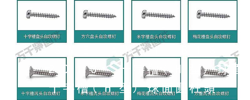 B:球面圓柱頭; C:圓柱頭; F(K):沉頭; H:六角頭;HW:六角頭帶墊圈; O:半沉頭; P:平元頭; R:半元頭;PW:平元頭帶墊圈; T:大扁頭; V:蘑菇頭;④ 螺釘牙型 A:自攻尖尾(日標(biāo)第1種)疏 外扳擰:六角、六角法蘭面、六角凸緣、六角花形等;內(nèi)扳擰:一字槽、十字槽H型(Phillips)、十字槽Z型(Pozidriv)、十字槽F型(Frearson)、四方槽(Scrulox)、復(fù)合槽、內(nèi)花鍵、內(nèi)六角花形(梅花槽)、內(nèi)三角、內(nèi)六角