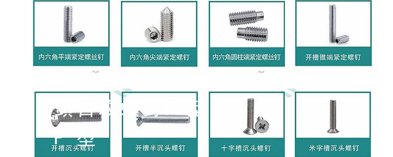 扳擰方式—扳擰方式五花八門。外扳擰:六角、六角法蘭面、六角凸緣、六角花形等;內扳擰:一字槽、十字槽H型(Phillips)、十字槽Z型(Pozidriv)、十字槽F型(Frearson)、四方槽(Scrulox)、復合槽、內花鍵、內六角花