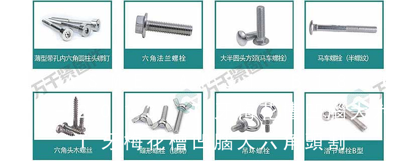 1.機(jī)螺釘 2.自攻螺釘 3.鉆尾螺釘 4.墻板釘 5.纖維板釘 6.木螺釘7.六角木螺釘 8.不脫出螺釘 9.組合螺釘 10.微型螺釘 11.家具螺釘 12.電子螺釘頭型:1.六角頭(hexagon head) 2.六角頭法蘭面(hexagon head with flange) 3.