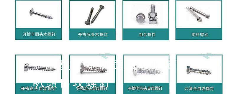 外扳擰:六角,六角法蘭面,六角凸緣,六角花形等;內扳擰:一字槽,十字槽H型,十字槽Z型,十字槽F型,四方槽,復合槽,內花鍵,內六角花形,內三角,內六角,內12角,離合器槽,六葉槽,高扭矩十字槽等。螺紋類型